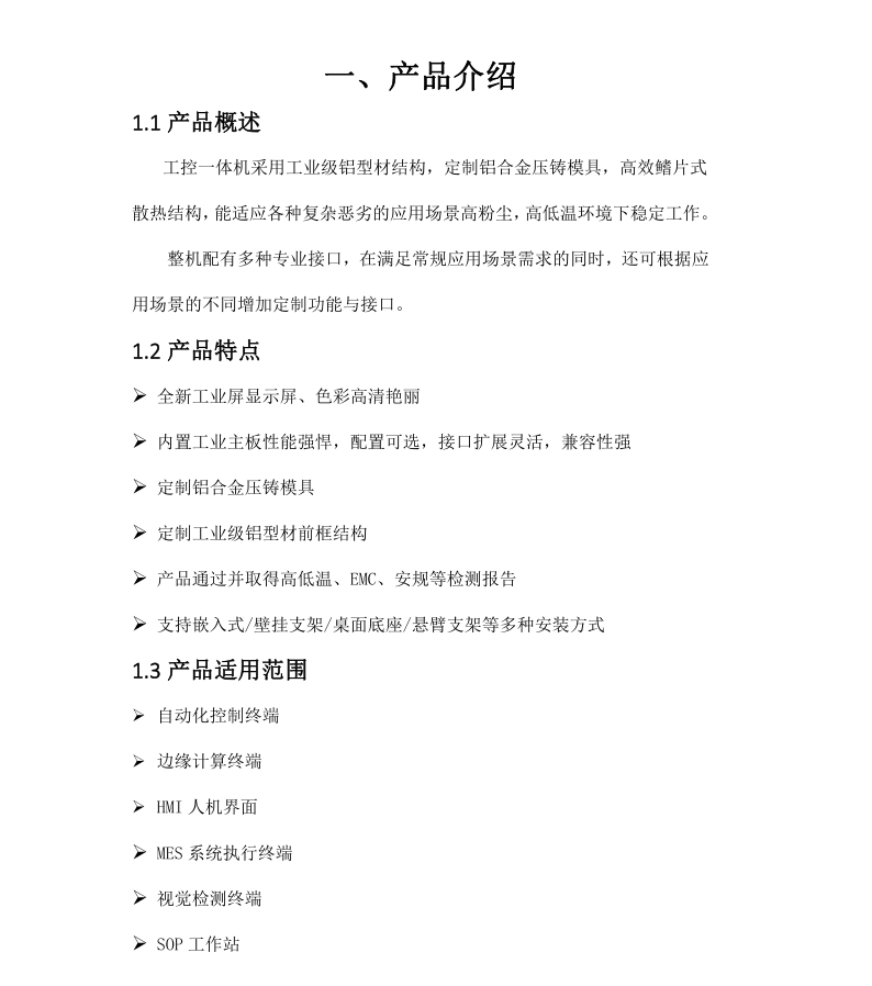 工控一体机采用全铝材质,定制独家压铸模具,高效的鳍片式散热结构, 能适应各种复杂恶劣的应用场景高粉尘,高低温环境下稳定工作。 整机配有多种专业接口,在满足常规应用场景需求的同时,还可根据应 用场景的不同增加定制功能与接口。