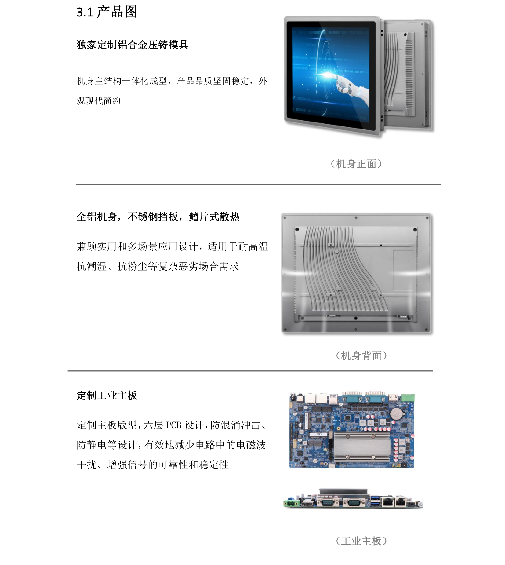工控一体机采用全铝材质,定制独家压铸模具,高效的鳍片式散热结构, 能适应各种复杂恶劣的应用场景高粉尘,高低温环境下稳定工作。 整机配有多种专业接口,在满足常规应用场景需求的同时,还可根据应 用场景的不同增加定制功能与接口。