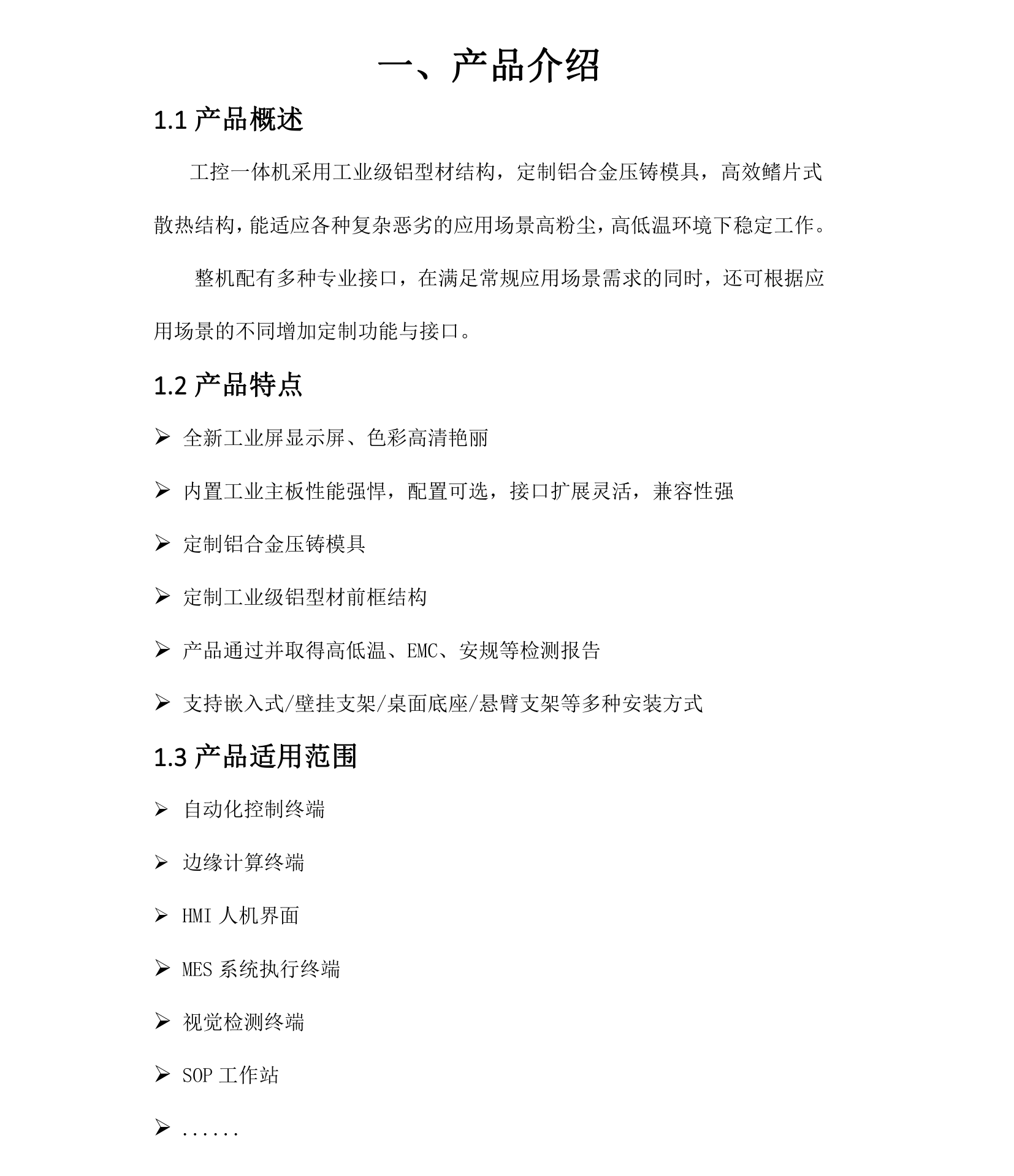 工控一体机采用全铝材质,定制独家压铸模具,高效的鳍片式散热结构, 能适应各种复杂恶劣的应用场景高粉尘,高低温环境下稳定工作。 整机配有多种专业接口,在满足常规应用场景需求的同时,还可根据应 用场景的不同增加定制功能与接口。