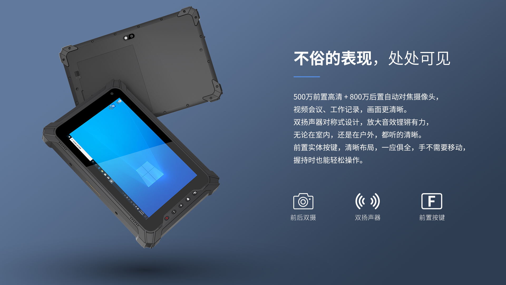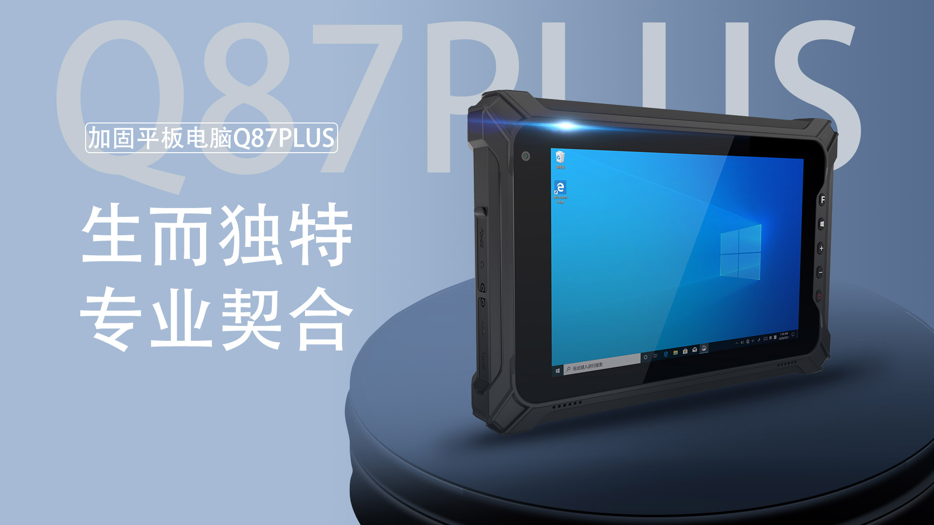 Q87PLUS 是一款8英寸加固平板电脑,采用英特尔四核处理器 ,能带来更快、更高效的使用体验。其外观延续了上一 代机型的工业设计风格和强固式技术,保持了IP65防护的超高水准,另外还配备有 高清高亮屏幕、8MP后置摄像头、二维码模块(选配)、双频WiFi、双模定位、 大容量电池等功能特性,能应用在工业、制造业、公用事业等诸多行业场景。
